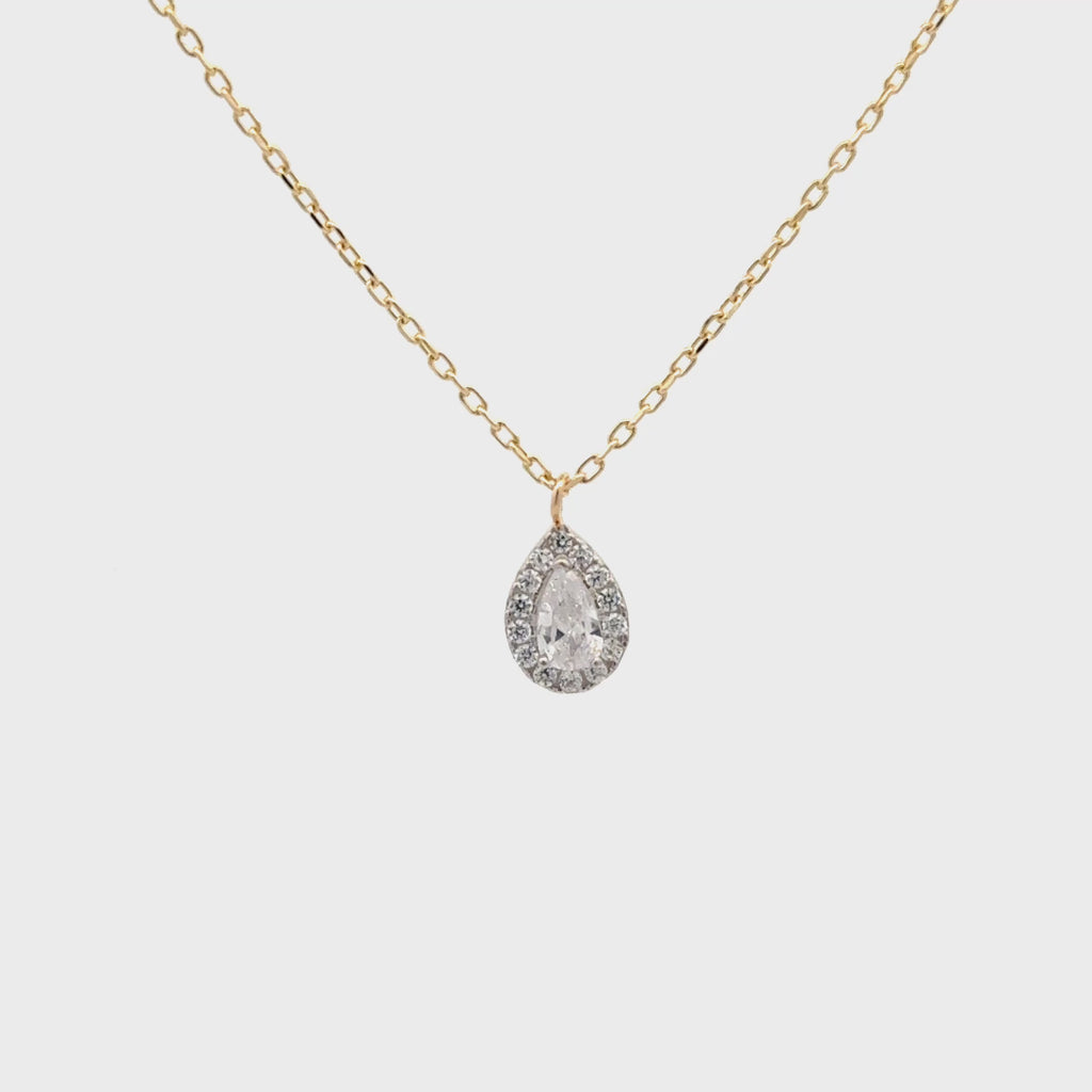 Halskette mit Anhänger Tropfen Weiß | 585/- GG | HK011